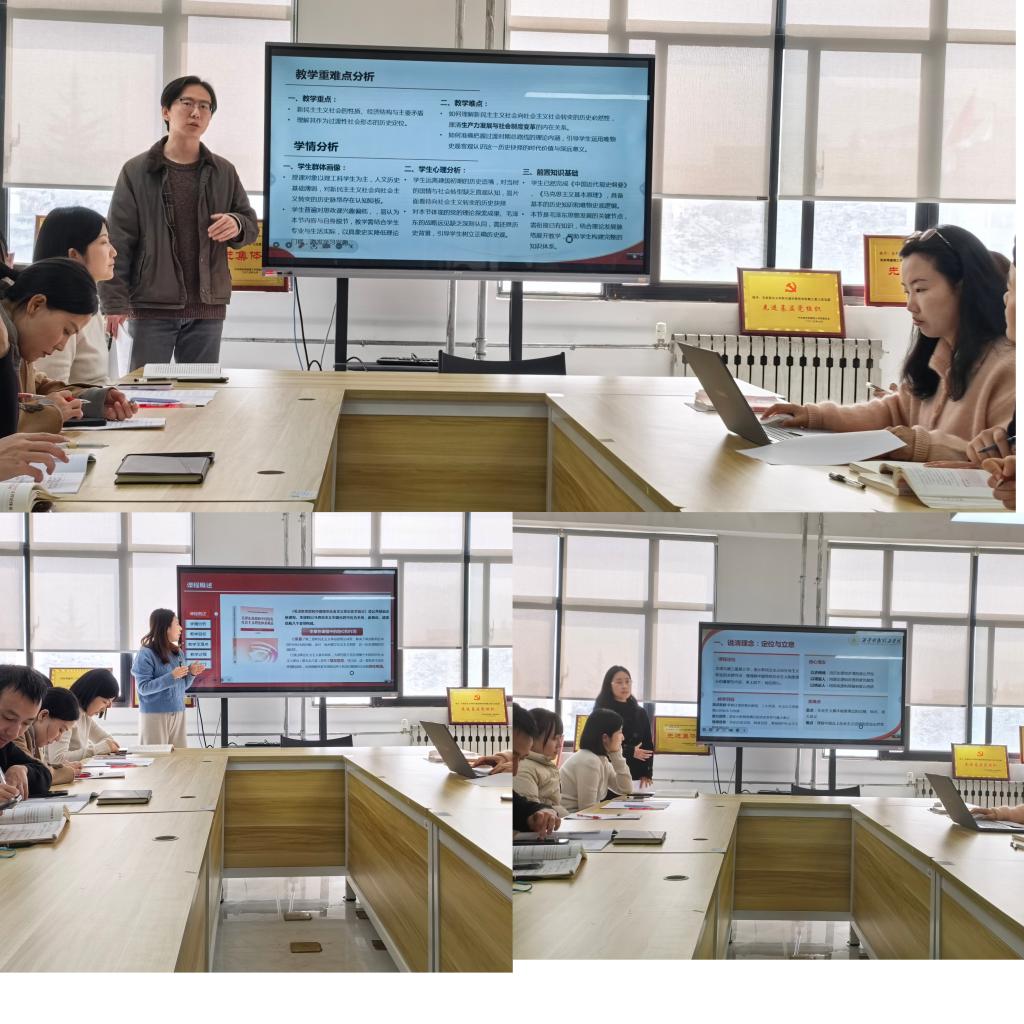 会议伊始,龚玲主任指出,本次集体备课暨说课会聚焦第三章“社会主义改造理论”,她强调,全体教师要紧扣章节历史逻辑、理论内涵与教学重难点,精准把握教材核心精髓,优化教学设计与讲授方法,着力提升课堂教学的理论深度与情感感染力,把思政课讲深、讲透、讲活。