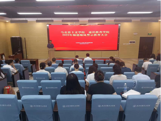 为深入推进学习贯彻习近平新时代中国特色社会主义思想主题教育,贯彻落实党的二十大精神,以及教育部师德师风建设工作推进暨师德集中学习教育启动部署会精神,切实增强教师使命感、责任感,6月14日,马克思主义学院与通识教育学院在建德楼202会议室召开了2023年师德师风警示教育大会。学校党委副书记董昊、学院全体教师参加会议,会议由学院党委书记王君涛主持。