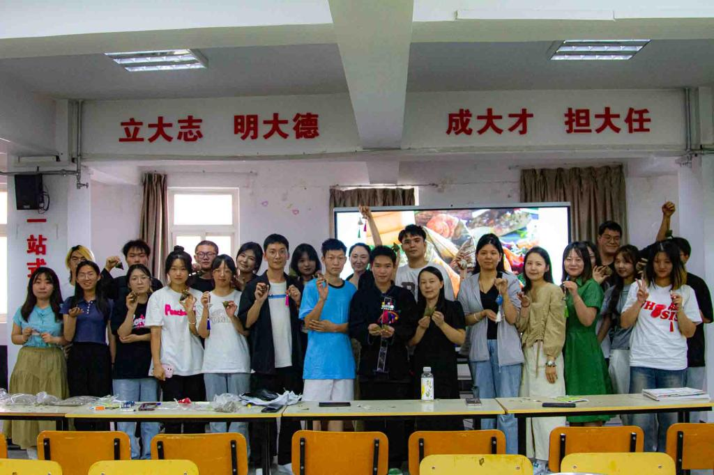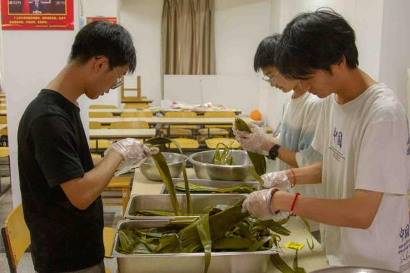 活动中,大家围在一起包粽子,做香囊,现场热情高涨,专注投入。折叠粽叶,舀放、盖严食材,再用线绳系紧......一片片粽叶、一根根线绳在大家手中灵活地跳动着;制作香囊的师生们穿针、引线、打结、裁剪,再到挂珠串儿、装香料、缝合,丝丝线线缠绕出对端午节祥和、生活安康的美好祝愿,整个活动过程充满了欢声笑语。