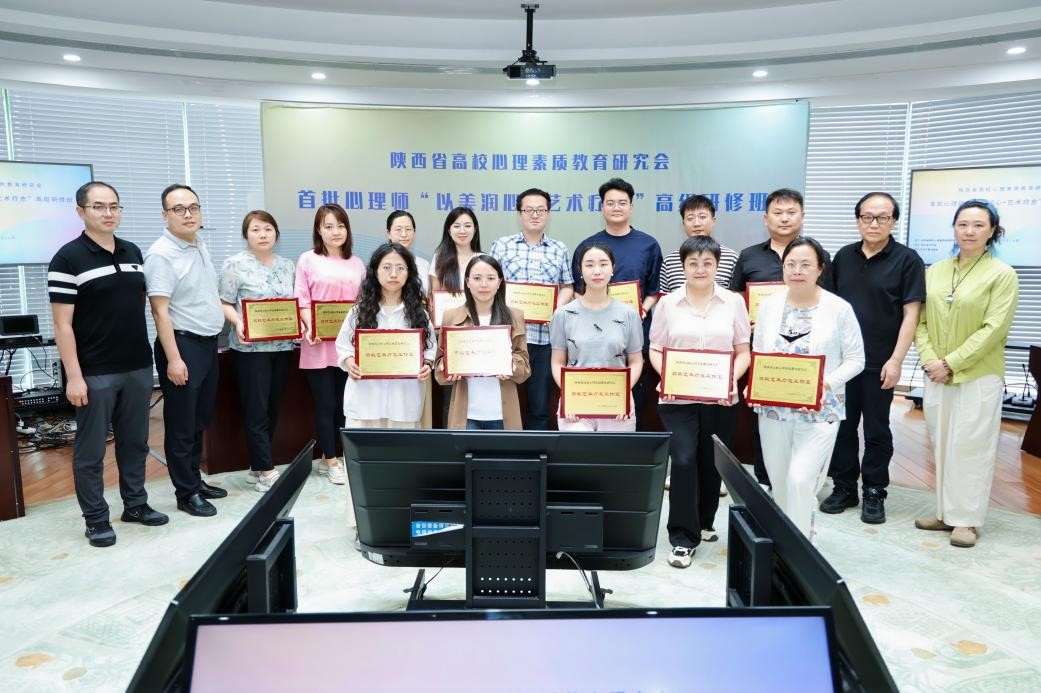 为贯彻落实教育部等十七部委印发的《全面加强和改进新时代学生心理健康工作专项行动计划(2023—2025年)》中“五育并举促进心理健康”的政策,按照《陕西省高校心理素质教育研究会关于举办“首批全省<注册艺术疗愈师>研修督导”的通知》,学校精英心理师长程教练营15人,通识教育学院2人,共17名老师于6月15日至16日赴西安美术学院参加了由陕西省高校心理素质教育研究会主办的陕西省高校首批“注册艺术疗愈师”高级研修班。