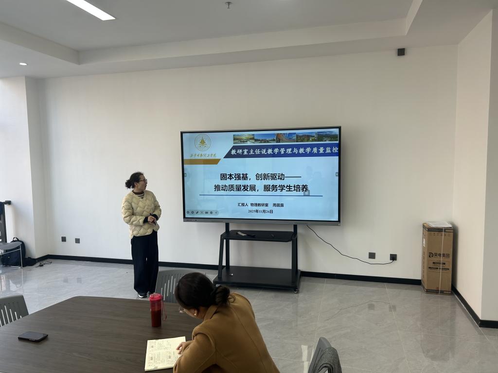 为深度践行“以评促建、以评促改、以评促管、以评促强”核心工作方针,系统推进教学评建各项任务落地见效,进一步深化教育教学改革创新、全面提升人才培养质量,11月26日下午2时至5时,通识教育学院开展教学评建“教研室主任说教学管理与教学质量监控”活动。会议紧扣“教研室主任说教学管理与质量建设”核心议题,数学、物理、体育、人文与艺术、大学生心理健康教育教研室5位主任依次汇报,立足学科专业特色与教学实践积淀,教学质量监控体系建设成效与优化方向,精准锚定评建工作重点任务,为学校高质量发展注入强劲动能。