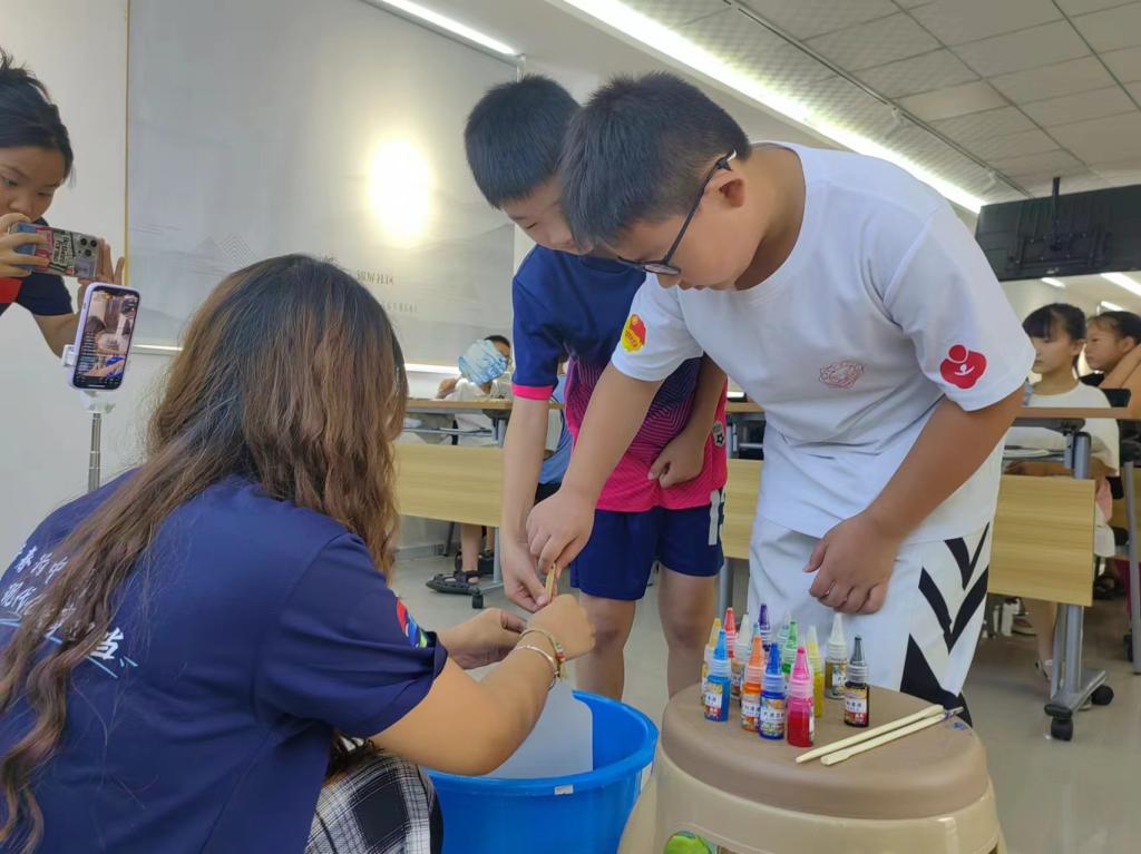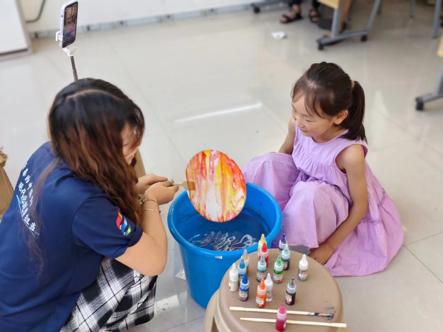 2024年7月18日雷竞技raybet登录入口通识教育学院 “同心燃梦”文艺支教暑期“三下乡”社会实践队在锦屏社区服务中心教室给小朋友们开展做漆扇以及读书分享会课程。带着小朋友们共同领略了两部经典文学作品的魅力和非遗文化遗产传统工艺的魅力。