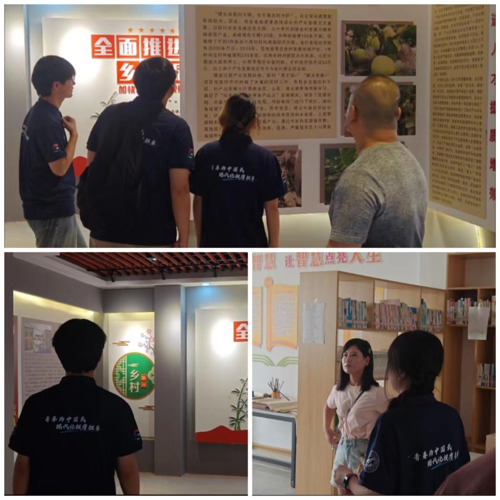 7月28日上午,实践队成员抵达彭村村委会。到达后首先与村委会的唐书记、吴书记、董主任、丁主任和沈主任进行了会议讨论。在会议中,吴书记介绍了彭村的发展现状、面临的挑战以及未来的规划,为后续的实践活动奠定了坚实的基础。会议结束后,吴书记带领实践队成员参观了当地的村史馆和阅览室,重温了彭村的历史记忆,进一步坚定了传承红色文化的责任感和使命感。