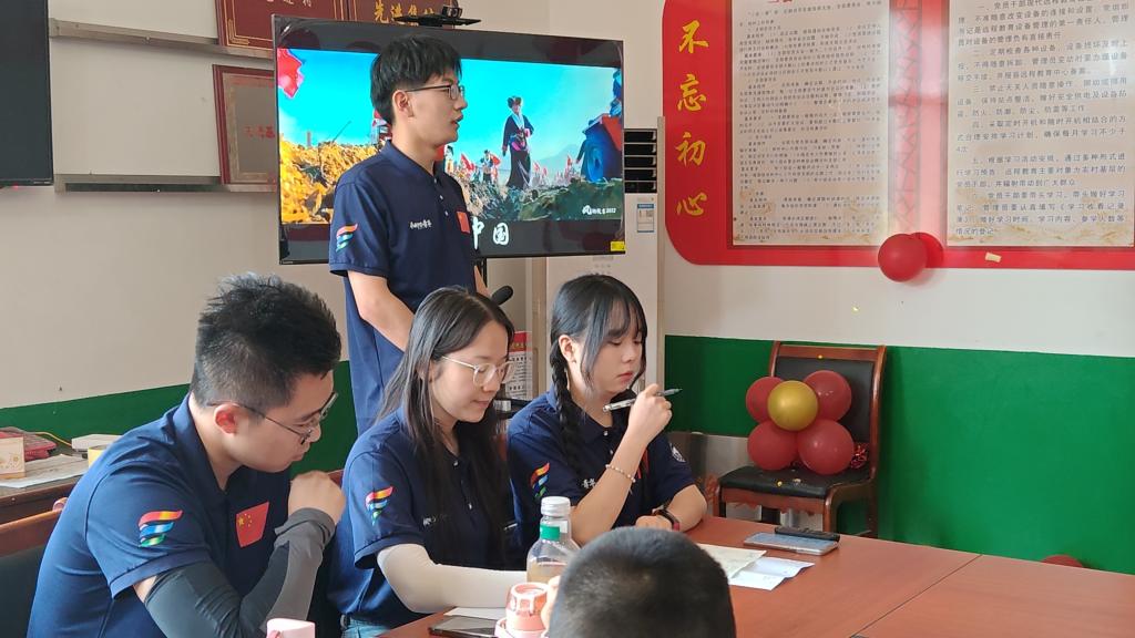 比赛当天,实践队成员们与留守儿童们共同布置了比赛现场,营造出浓厚的红色氛围。随着主持人的宣布,红歌比赛正式开始。孩子们身着整洁的服装,以稚嫩却坚定的声音,唱响了红歌。他们的歌声虽显稚嫩,但每一句歌词都饱含深情,每一个音符都跳跃着对祖国的热爱与对革命先烈的敬仰。实践队成员们还邀请了指导教师宋格格老师与孟欣老师共同担任了评委和辅导老师,他们耐心指导孩子们的发声、表情和动作,帮助他们在比赛中发挥出最佳水平,在歌声的传递中,红色文化将如同春雨般润物无声地深植于孩子们的心田,成为他们成长道路上不可或缺的精神支柱和动力源泉。