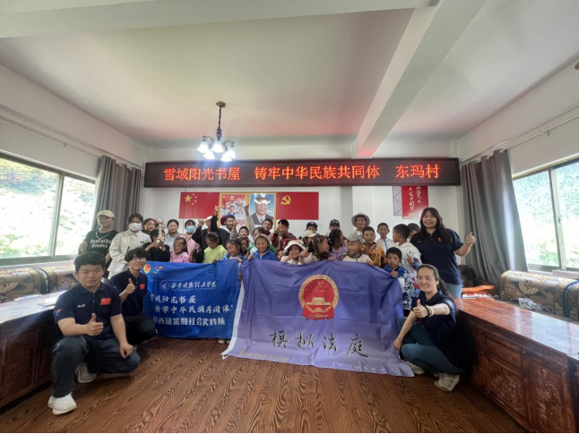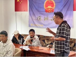 下午的模拟法庭体验环节,孩子们拿到自己的桌牌,扮演法官、检察官、律师等角色,通过模拟校园欺凌案件的庭审过程,学习法律知识,也培养逻辑思维和表达能力。东玛村驻村干部工布江达县司法所所长索朗尼玛在活动结束后用藏语总结了模拟法庭活动,鼓励孩子们了解法律,学会运用法律保护自身的成长成才。