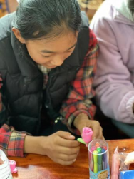 彩泥雕塑环节更是受到了孩子们的热烈欢迎,藏族儿童发挥自己的想象力,用灵巧的小手将彩泥捏造出灵芝、松茸、牦牛等各种形状,体会到了动手的乐趣,也生动的展示出了藏区特色。