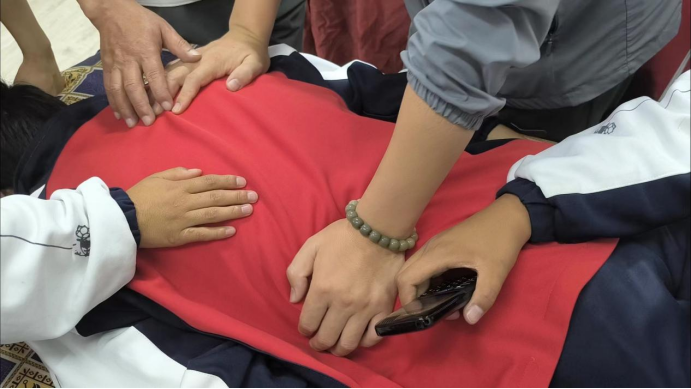 盲人群体一直是社会关注残障人群中的重要群体,他们的生存与就业也是社会各界的关心重点。在特殊教育思政办主任阿旺老师的组织下,志愿者们为全体盲生进行了全天密集的训练,孩子们积极主动,不怕辛苦的抓紧学习,分别学习了:按摩基础手法、肩颈调理按摩、视力康复按摩等,盲人教师司勇老师表示:很多基础动作教学的非常细致,让孩子们得到很好的发力教导,以后避免自己发力不当而受伤。学习结束后一定会反复听志愿者医生录音,带领孩子们按照步骤好好练习,助力孩子们按摩技能提升,促进盲童就业。