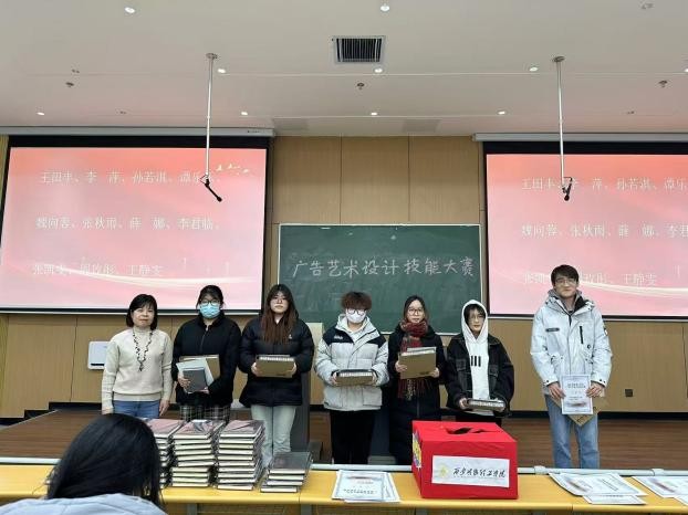2025年1月2日颁奖典礼在庄重而热烈的氛围中举行。广告艺术专业的舒粉利老师发表了鼓舞人心的致辞,首先表示了对高职学院的大力支持表示衷心感谢,并对参赛学生们的卓越创造力给予了高度评价。随着颁奖进程的推进,一等奖、二等奖、三等奖及优秀奖的获奖名单逐一揭晓,获奖者们满怀喜悦地走上领奖台,从专业教师手中接过荣誉证书和丰厚奖品。这一时刻,是对他们个人才华和辛勤努力的最好肯定。