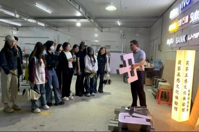 企业各部门负责人带领师生深入车间,详细了解广告产品的生产工艺与制作流程。许多在课堂中学到的理论知识,在实际项目中变得生动而具体,令同学们倍感新奇与启发。