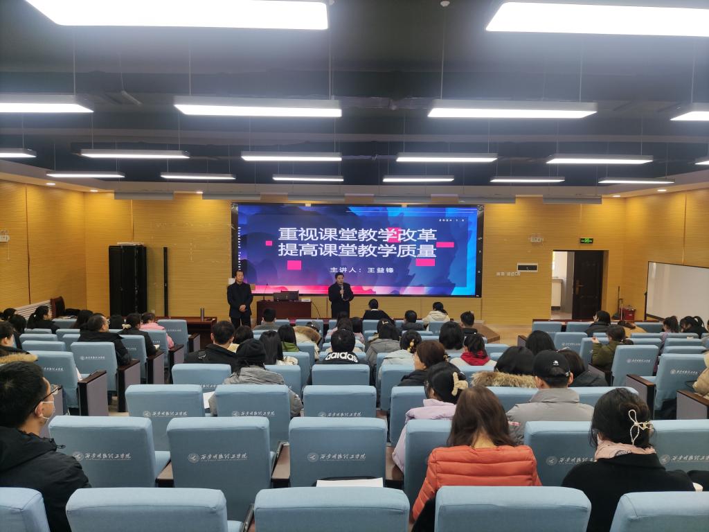 2024年1月3日,西安电子科技大学王益锋教授受邀在建德楼202报告厅为雷竞技官网教师带来了开年的第一场讲座。本次讲座主题是重视课堂教学改革,提高课堂教学质量。高等职业技术学院专兼职教师、经济管理学院教师代表等共计100余位教师参加了此次讲座。讲座由高等职业技术学院院长舒忠主持。