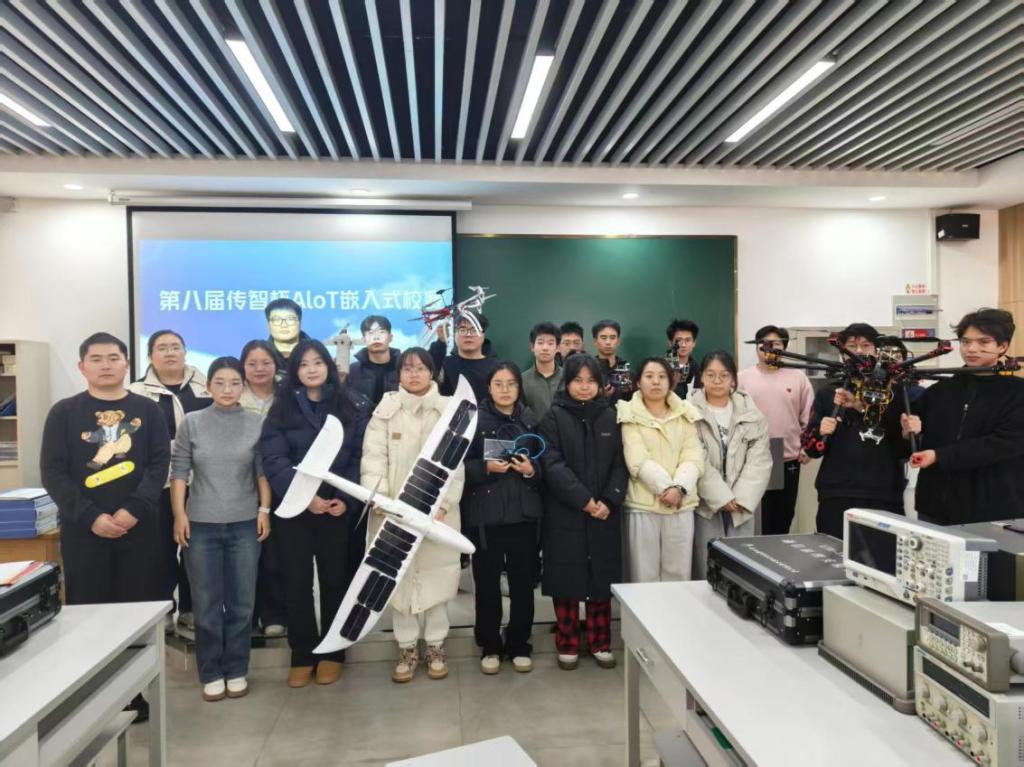 2025年12月17日,由信息工程学院主办的第八届“传智杯”全国IT 技能大赛AIoT嵌入式系统创新大赛校赛在明心楼503实验室隆重举行。本次竞赛吸引了来自全校各年级的12支团队同台竞技,参赛选手们通过PPT讲解、实物演示等形式,充分展现AIoT技术在各领域的创新应用。