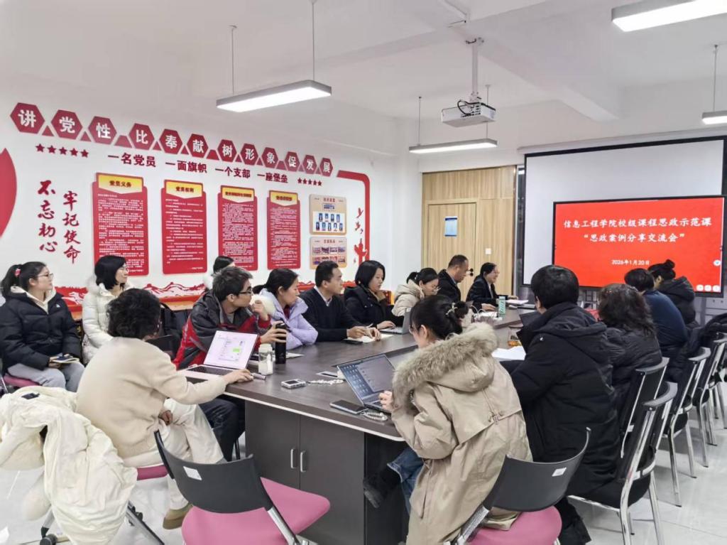 为深入贯彻立德树人根本任务,全面推进课程思政高质量建设,总结推广教学改革经验,1月20日下午14:30,信息工程学院在明志楼北206会议室成功举办校级课程思政示范课负责人教学案例分享会。分享会由学院教学副院长张健主持,冯强院长、立项课程负责人现场参会,全院教师线上参会。