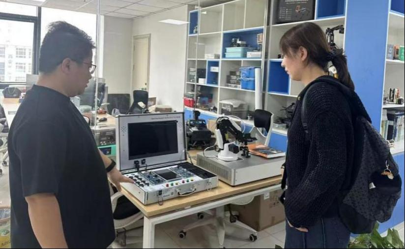 活动中,蔡总监带领两位教师参观了公司研发中心与产品展示区,结合实际案例讲解了智能设备的研发逻辑、应用场景及市场前景,涵盖智能控制系统、物联网解决方案等核心产品,让教师直观了解到行业前沿技术与企业实际运作模式。