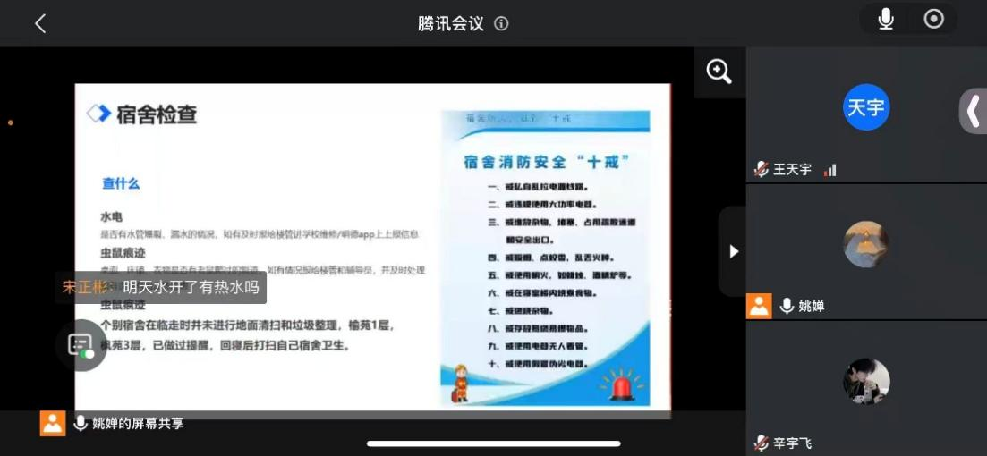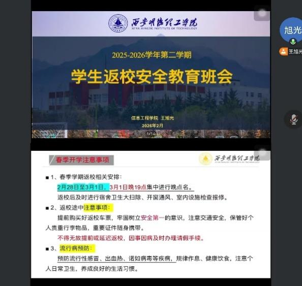 会后,全体辅导员第一时间落实会议要求,一方面精心组织所带学生召开返校前安全教育主题班会,围绕交通安全、消防安全、网络安全、传染病防控、禁燃规定等内容开展全面宣讲,强化学生安全防范意识,筑牢校园安全思想防线。