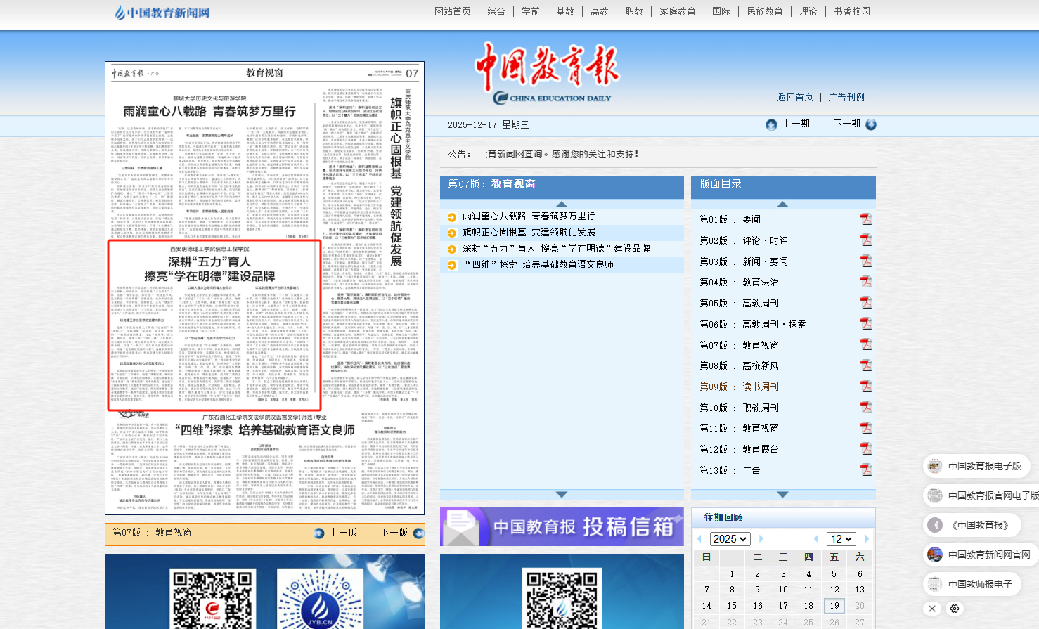 12月17日,《中国教育报》聚焦学院育人实践,对“五力育人”赋能学生全面发展的工作成效进行深度报道。现将原文转载如下: